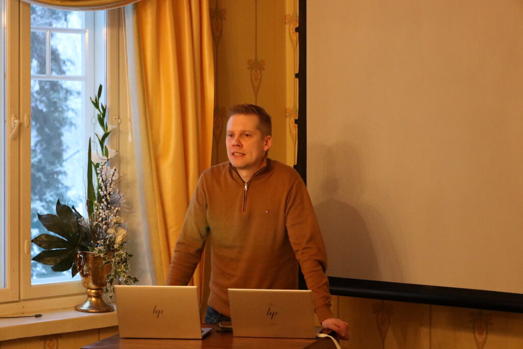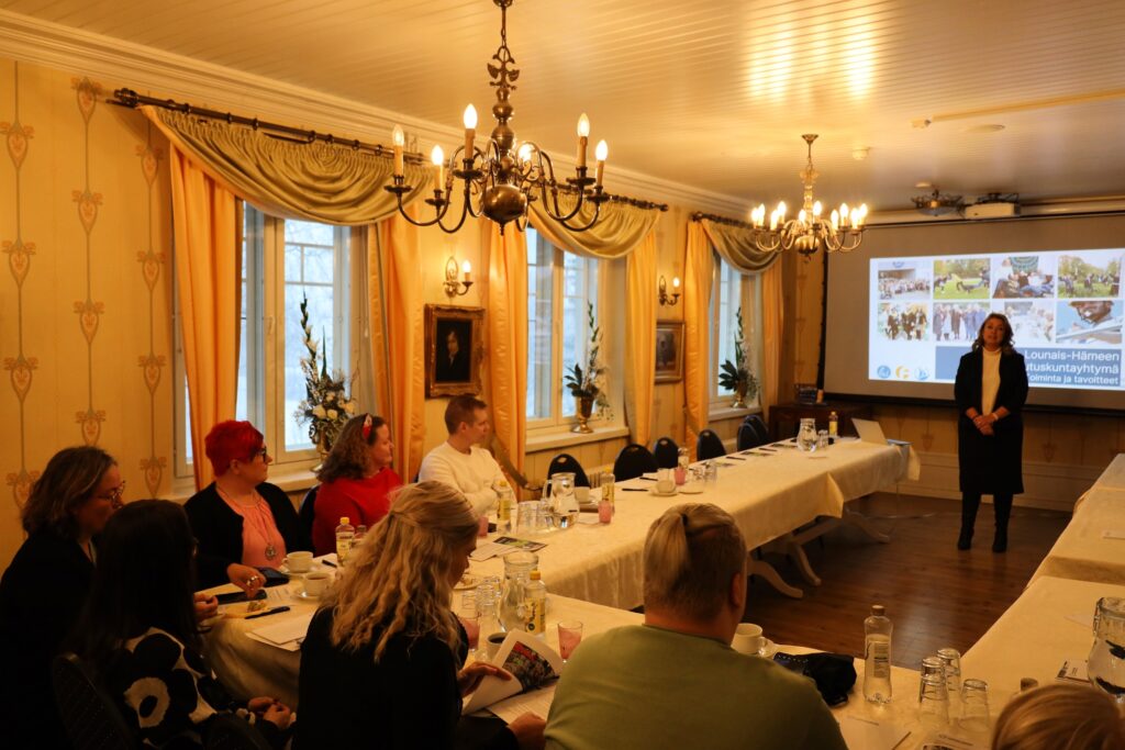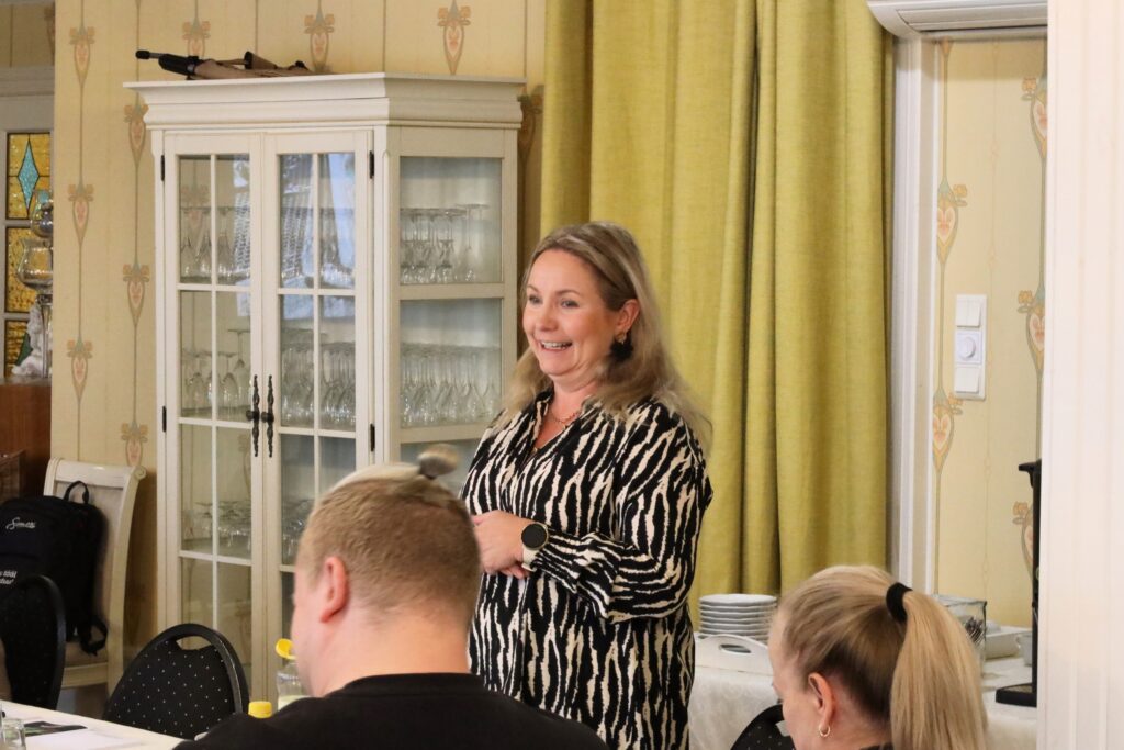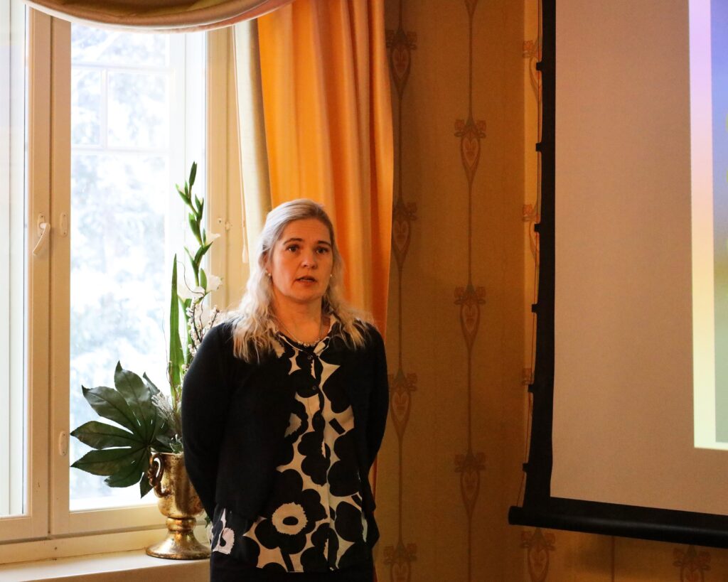 Lounasaikaan Vaihmalan Hovin yrittäjä Noona Rissanen piti pienen historiakatsauksen seminaaripaikasta. Vaihmalan Hovilla on monipuolinen ja pitkä historia. Siellä on muun muassa aikoinaan kuvattu Kummeli-sarjan sketsi. Historiakatsauksen jälkeen siirryttiin maukkaalle lounaalle.