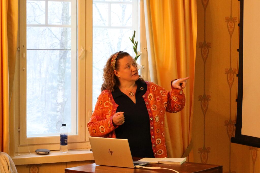 Lounas päättyi ja oli aika palata seminaaripenkille. Rehtori Heli Elo-Vuola aloitti iltapäivän ohjelman. Hänen johdollaan syvennyttiin yhteisölähtöiseen pedagogiikkaan, joka on ajava voima Lounais-Hämeen koulutuskuntayhtymässä.