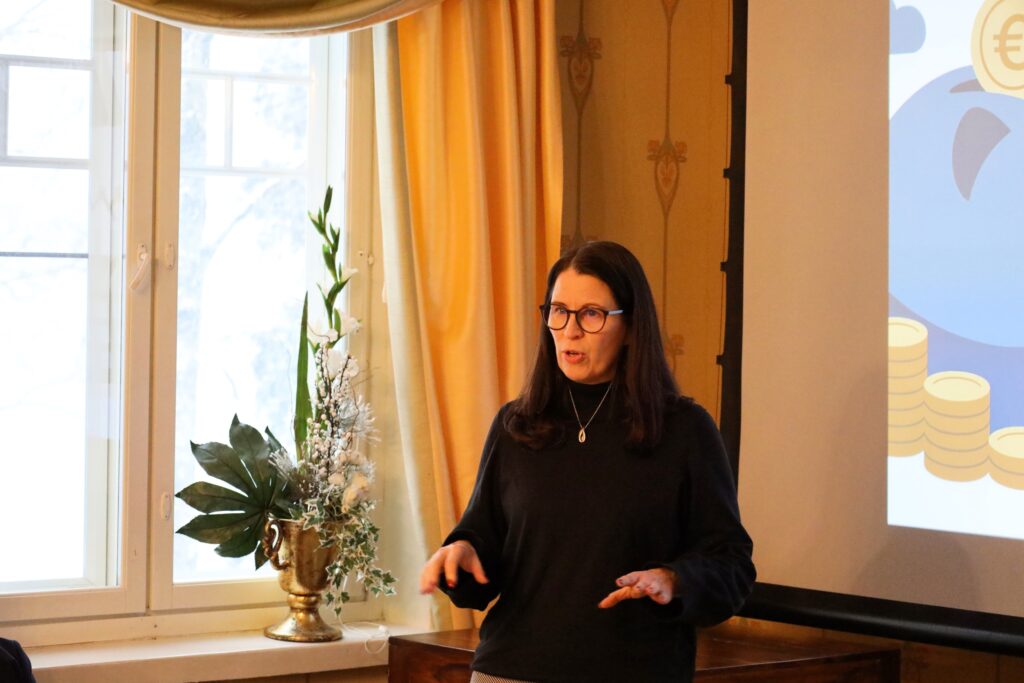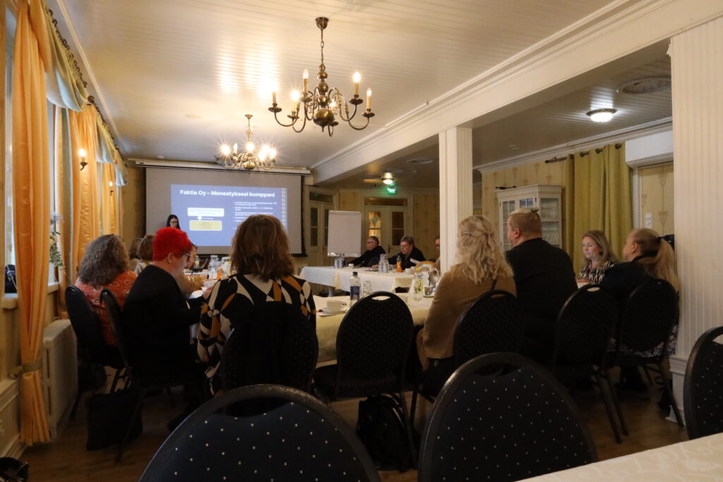 Kahvitauko virkisti seuraavaksi osallistujien mieltä ja keskittymiskykyä. Kahvin jälkeen Faktia oy:n toimitusjohtaja Tanja Paassilta kertoi yhtiön toiminnasta ja tulevaisuuden näkymistä.